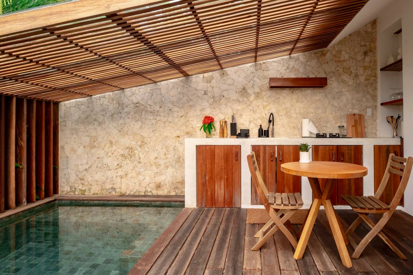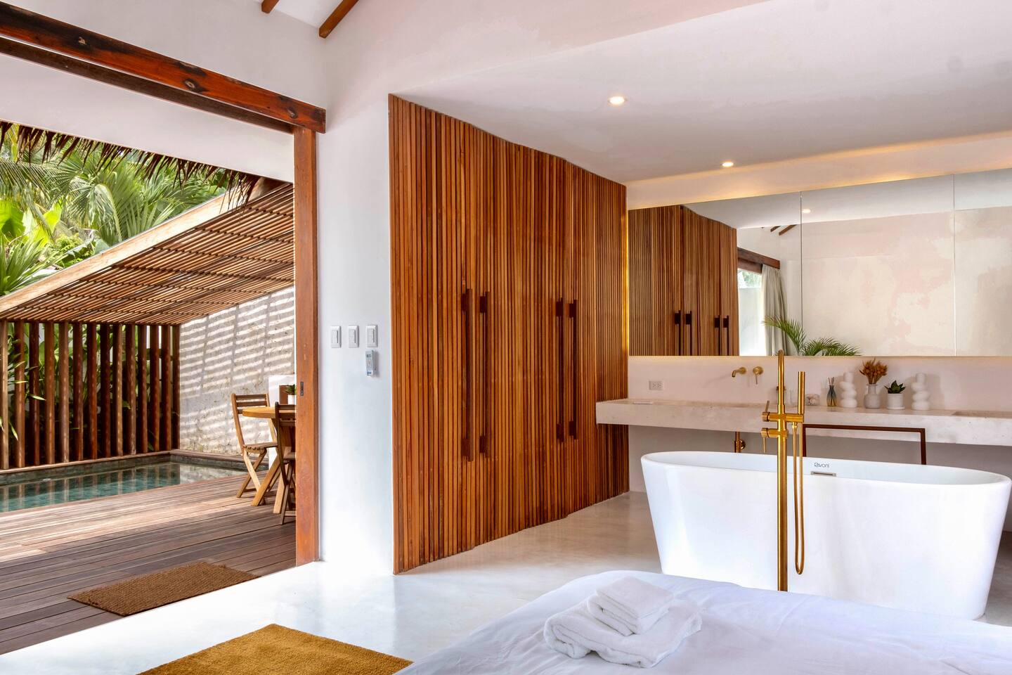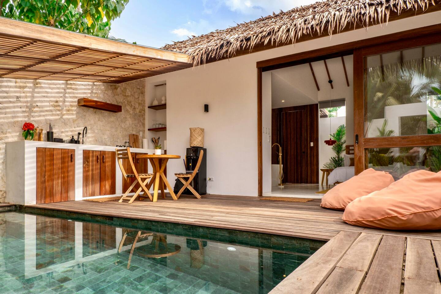 · This spacious 1-bedroom villa is for exclusive use of our guests, which have 24h access to the property during their stay. · To ensure our guests' privacy and safety the building is fenced and can be locked from inside and outside. · The guests have unlimited access to private outdoor pool and bathtub with hot water. · Free access to 200Mbps STARLINK network. · The guests benefit from free parking on the premises of the property, which can fit both motorbikes and cars. · The villa is located on a large lot surrounded by banana and coconut trees, which is at the full disposal of the guests.