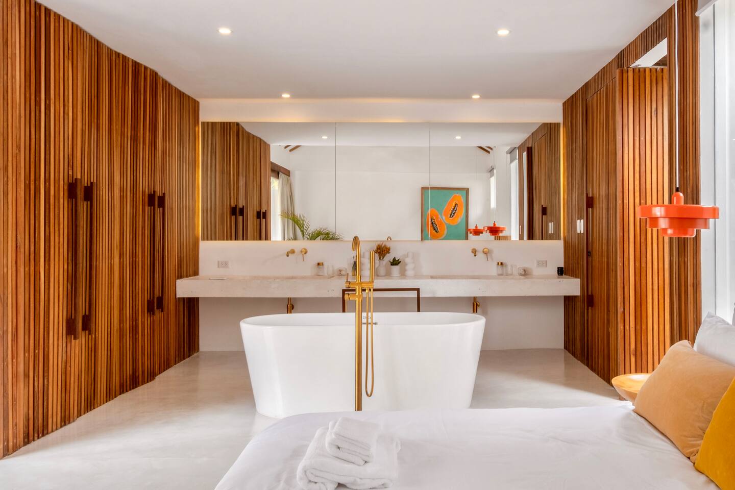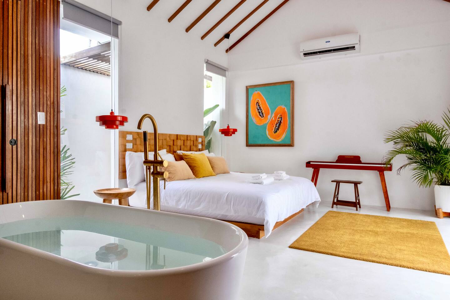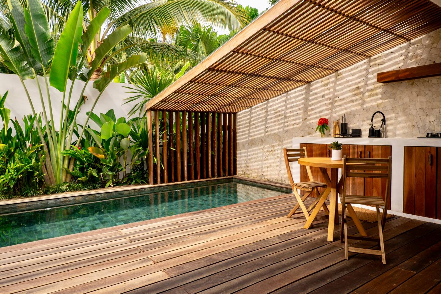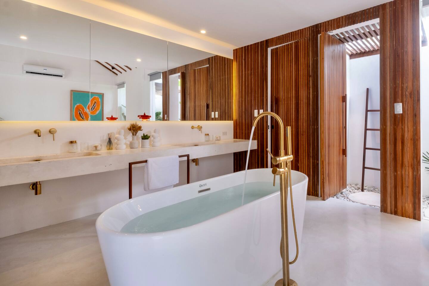 · This spacious 1-bedroom villa is for exclusive use of our guests, which have 24h access to the property during their stay. · To ensure our guests' privacy and safety the building is fenced and can be locked from inside and outside. · The guests have unlimited access to private outdoor pool and bathtub with hot water. · Free access to 200Mbps STARLINK network. · The guests benefit from free parking on the premises of the property, which can fit both motorbikes and cars. · The villa is located on a large lot surrounded by banana and coconut trees, which is at the full disposal of the guests.
